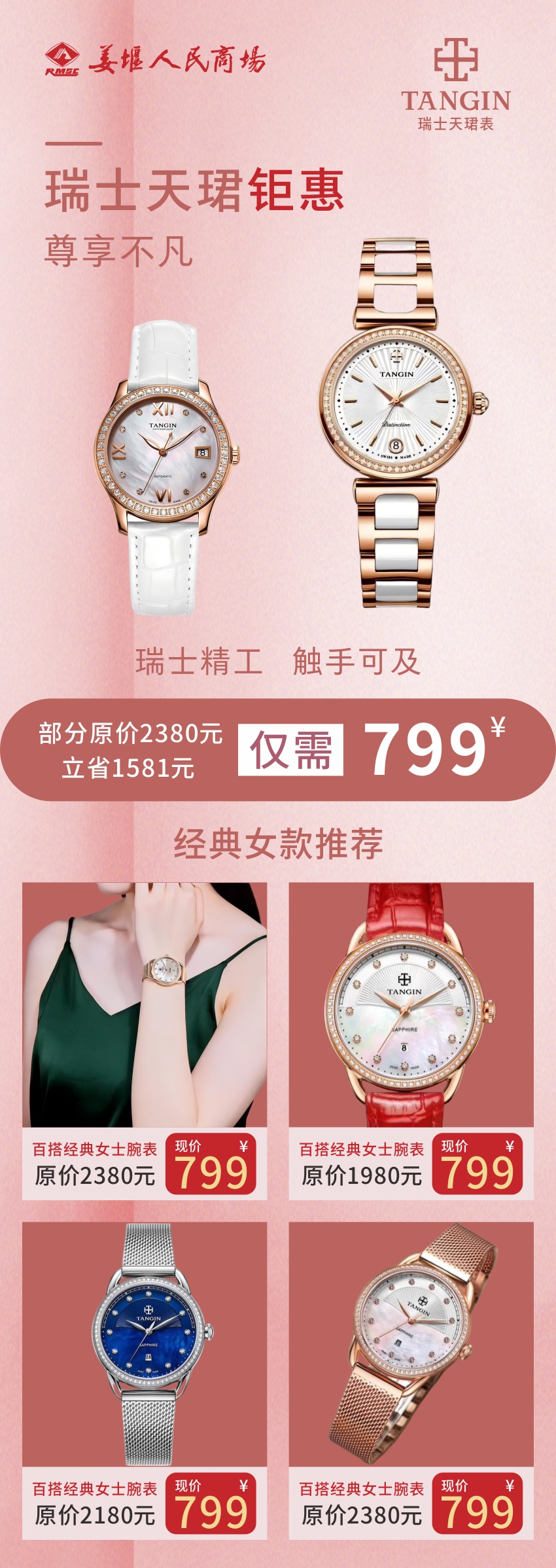 【姜堰人民商场】瑞士天珺钜惠,尊享不凡 | 部分原价2380元,立省1581元,仅需799元 !立即抢购,机会难得,售完即止。